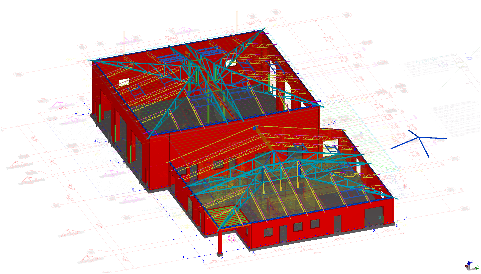 The roof system for Paraloft, Academic, and MotorT use bar joists and steel truss & beam supporting a steel deck. All the roofing is standing seam metal roof. All these building required high quality structural steel shop drawings provided by Lucrosol.