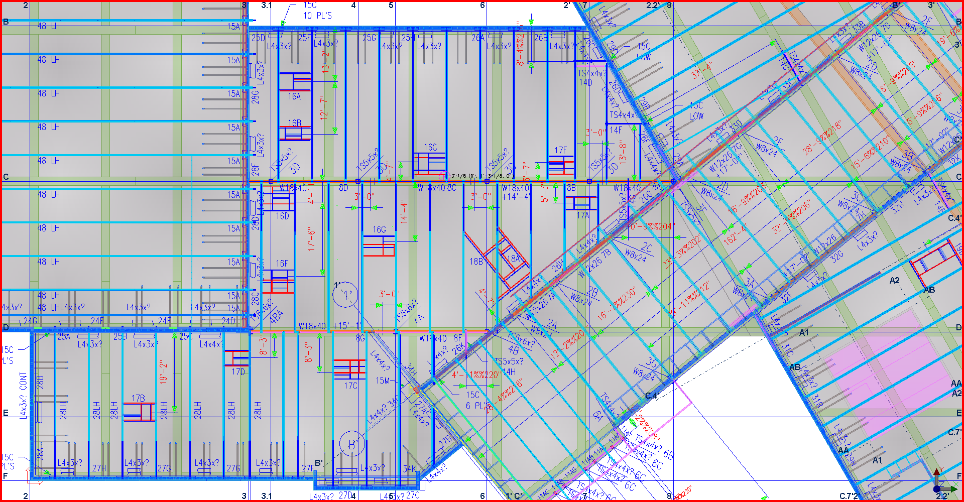 Note the red vs blue - final shop drawings for fabrication did not match coordinated model.