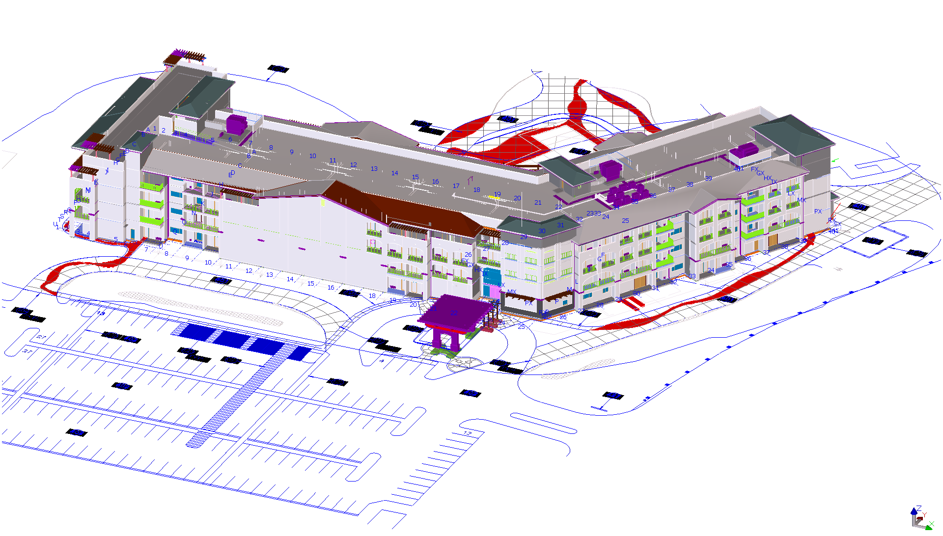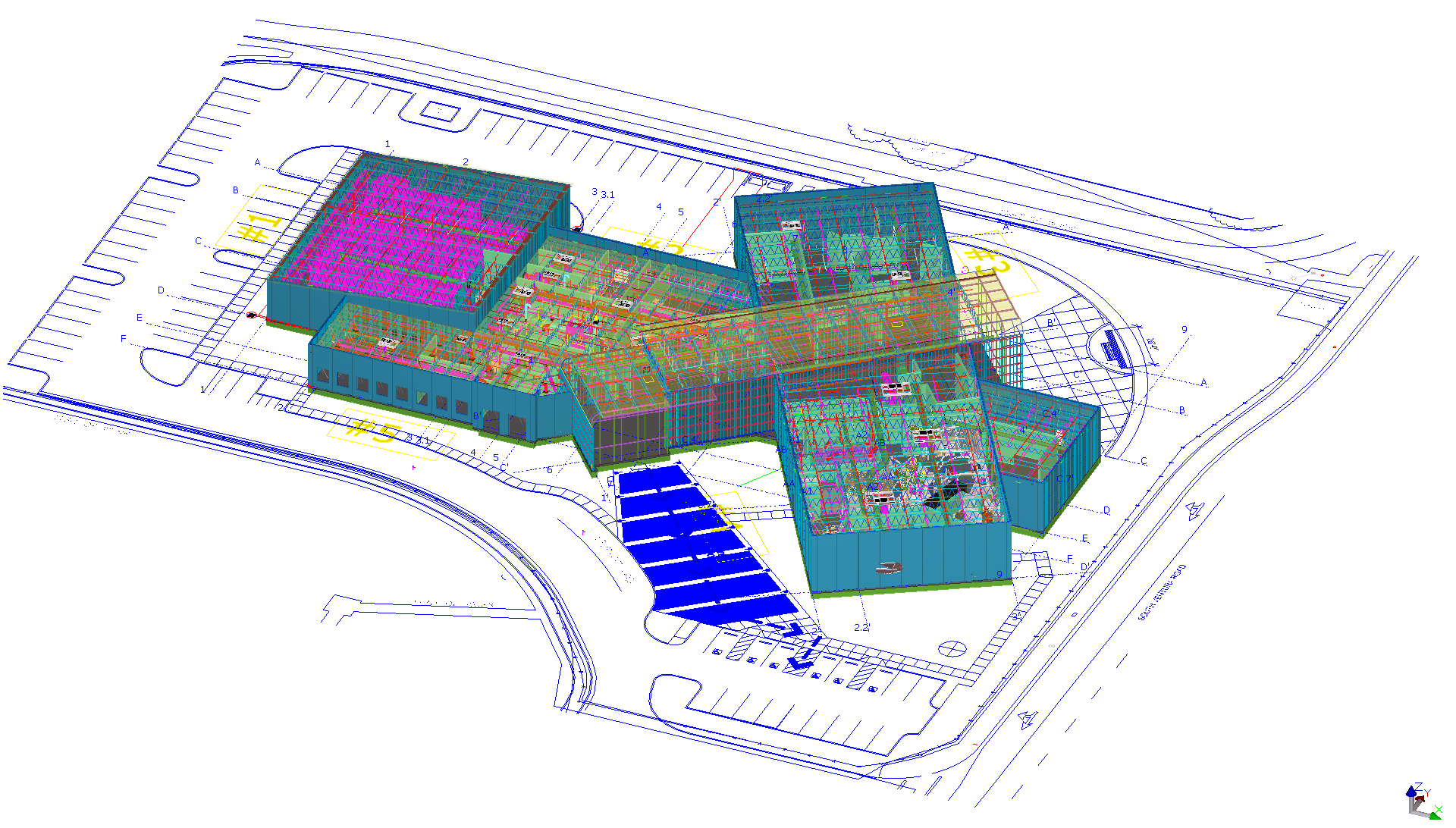 The structural engineer used a software product called Tekla for the engineering models, while the Mechanical and Electrical contractor used AutoCAD MEP a 3D product. The Plumber used 2D AutoCAD and the Fire sprinkler contractor used CADpipe. LucroSol took everyone’s 2D & 3D design and combined them into one model, a master digital prototype of the building. In many cases the firm created 3D drawings from 2D plans, rerouted HVAC wet and Dry and returned the MEP drawing to their owners for final shop drawings. We created a written specification to determine the modeled features that affected construct-ability, like the reflected ceiling plans, walls, soffits, bracing, and hangers. Once the entire building was coordinated, everything was built without conflicts or clashes the subcontractors would order and prefabricate their materials based on the revised drawings.
